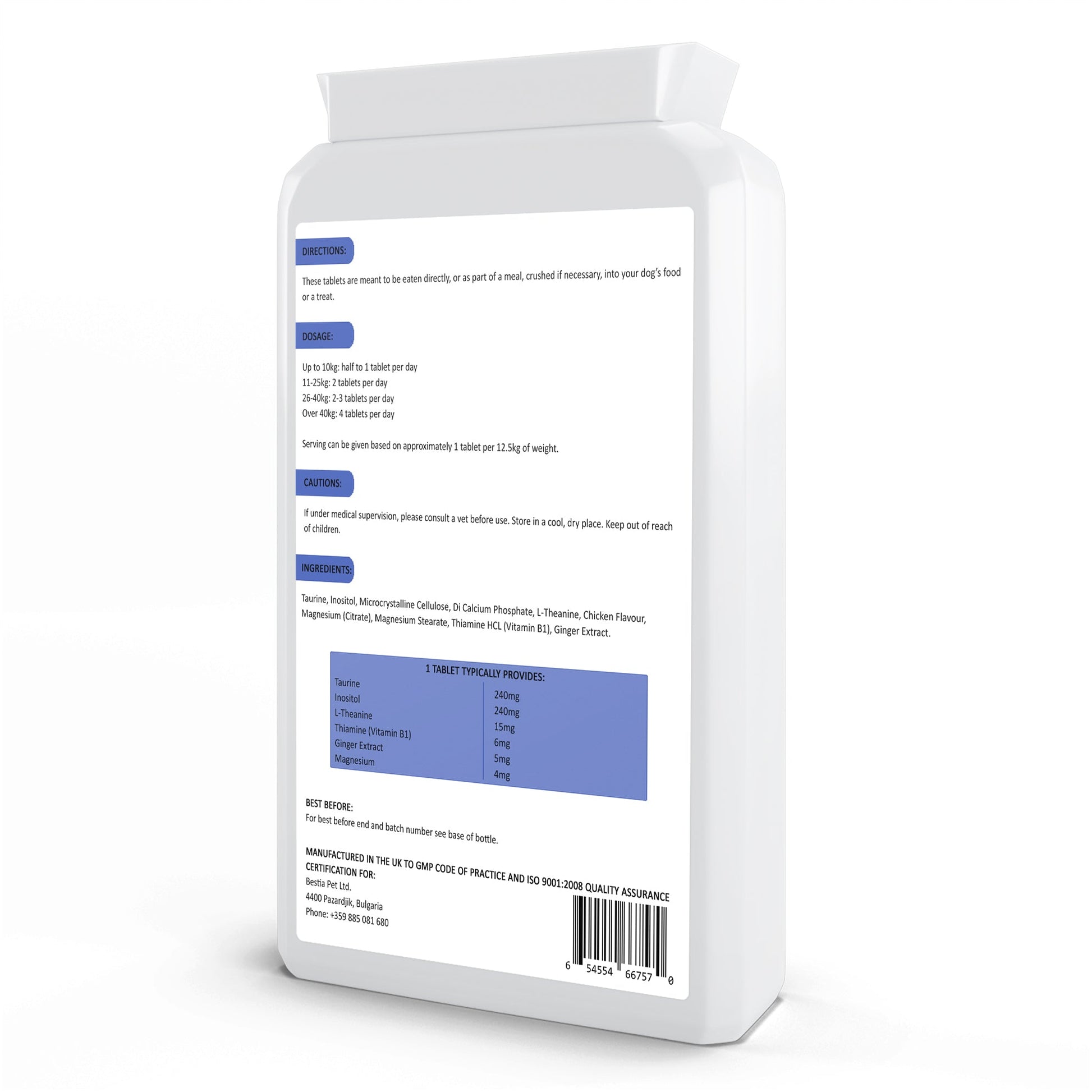 Bestia Dog Sport Supplements are manufactured in the UK to GMP code of practice and ISO 9001 quality assurance certification.